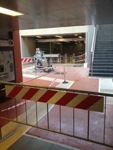 Scendo in metropolitana e trovo delle transenne che, da una parte limitano il passaggio ai passeggeri, e dall’altra formano una specie di gabbia come quelle per gli animali, dove all’interno ci lavora un operaio, lentamente, con le stesse movenze degli orsi bianchi allo zoo quando di estate soffrono il caldo. La nuova stazione della metro, appena aperta al pubblico, il giorno della prima pioggia rivelò quanto scivolosa e pericolosa fosse la pavimentazione appena fatta. Chissà con quale competenza, impegno e professionalitá gli architetti e i progettisti avranno scelto i materiali. Fatto sta che, arrivate le prime piogge dell’autunno il pavimento ricordava di più uno scivolo dell’Acquafan piuttosto che l’ingrasso della metro. Quindi apparvero le caratteristiche transenne e ci fu un intervento risolutivo: con un macchinario grattarono in modo irregolare il rivestimento appena posato. Si, si lo grattarono e in alcuni punti risaltava il grigio del cemento con sfumature crescenti del rosso del materiale di rivestimento. Bene oggi nella gabbia di transenne c’era un posatore che spalmava con cura ed attenzione, il nuovo rivestimento attorno alle luci incassate nel percorso pedonale. Evidentemente non aveva rivestito le luci con carta o plastica protettiva per evidenziare la sua abilità. Infatti ora, contando gli sbaffi del nuovo rivestimento rosso rimaste sulle lampade, si avrà memoria della sua destrezza come con una votazione dei giudici olimpici per la prestazione di un atleta.