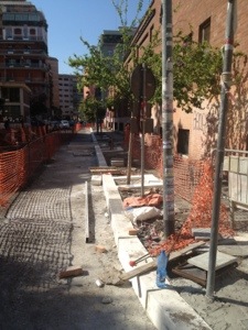 Esco di casa e mi dirigo verso la stazione. In una via entrambe i marciapiedi sono impraticabili perché ci sono dei lavori di ripavimentazione. Fatti bene, scavi profondi eliminano gli avvallamenti e le buche, ampliano gli accessi alle fogne, sistemano ed aumentano gli spazi dedicati agli alberi esistenti e nuovi. Da poco prima delle elezioni per il sindaco sono iniziati questi lavori che, strada, per strada, trasformano in praticabili quei marciapiedi che da più di dieci anni erano trappole per anziani. La mia vicina di casa é solo una dei tanti che ho visto cadere che, dopo essersi rotta il femore, ha chiesto un risarcimento al Comune e si é vista concludere il procedimento giudiziaro con una sentenza che motivava il nulla di fatto dicendo che “lei doveva essere più attenta a dove metteva i piedi”. Quindi a parte le passate esperienza qualcosa sta cambiando. Mentre vedevo i tre operai al lavoro mi é venuto in mente un articolo dove si descriveva il modo in cui in Cina hanno costruito una strada di 200 km in due settimane. Con 2000 operai divisi in squadre su 200 camion attrezzati si posizionavano sul tracciato ed ogni giorno una squadra completava 150 metri di strada. Nel mio quartiere, prima passano a chiudere una strada con il nastro rosso e bianco che segnala il cantiere, dopo circa una settimana installano il gabinetto mobile di legge e in circa un mese terminano tutti i lavori restituendo il marciapiede di un isolato nuovo ed alberato.