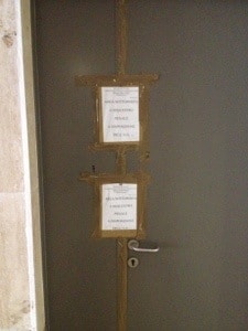 Arrivato alla Stazione Tiburtina mi colpiscono subito gli inservienti delle Ferrovie disponibili per informazioni. Non é ironia, sono per lo più dei ragazzi gentili e ben disposti che si avvicinano ai turisti (anche loro hanno occhio a me non hanno chiesto nulla) per dare informazioni. Ad alcuni sono rimasto vicino per ascoltarli e, spesso, in un inglese sintetico, ma non improvvisato guidavano i disorientati di turno verso il binario o la biglietteria appropriati. Devo dire che ho notato anche una porta chiusa con un nastro dove era scritto “luogo sottoposto a sequestro per procedimento penale” su due cartelli, forse per dare più solennità all’avvertimento. Ma l’ho notato di sfuggita perché mi sono diretto in bagno. L’ho trovato facilmente grazie alle indicazioni ed al carrello dell’inserviente delle pulizie che stazionava fuori. Sono entrato ed ho approfittato del posto, all’uscita il carrello era andato, forse a lasciare pulito allo stesso modo un’altro bagno. Unica nota stonata, la mancanza di qualsiasi dispositivo o distributore di fazzoletti che permettesse di asciugarsi le mani. Invece una cosa curiosa era il telefonino, non proprio di ultima generazione e con dei pezzi attaccati con lo scotch, lasciato per terra nel corridoio appeso al suo alimentatore per ricaricarsi.